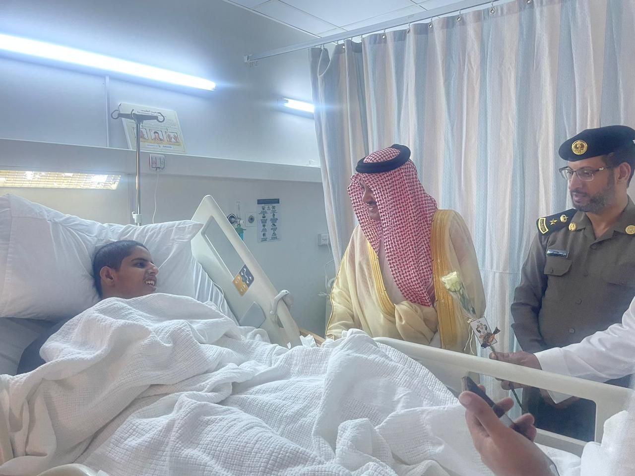 وعقب الصلاة قام محافظ المجاردة المكلف بزيارة للمرضى المنومين بمستشفى المجاردة العام وقد كان برفقته مدير القطاع الصحي بالمجاردة بالنيابة الأستاذ سعيد بشران العمري حيث قدم محافظ المجاردة المكلف للمرضى التهنئة والورود والهدايا بمناسبة عيد الأضحى المبارك داعياً المولى عز وجل أن يلبسهم ثياب الصحة والعافية .