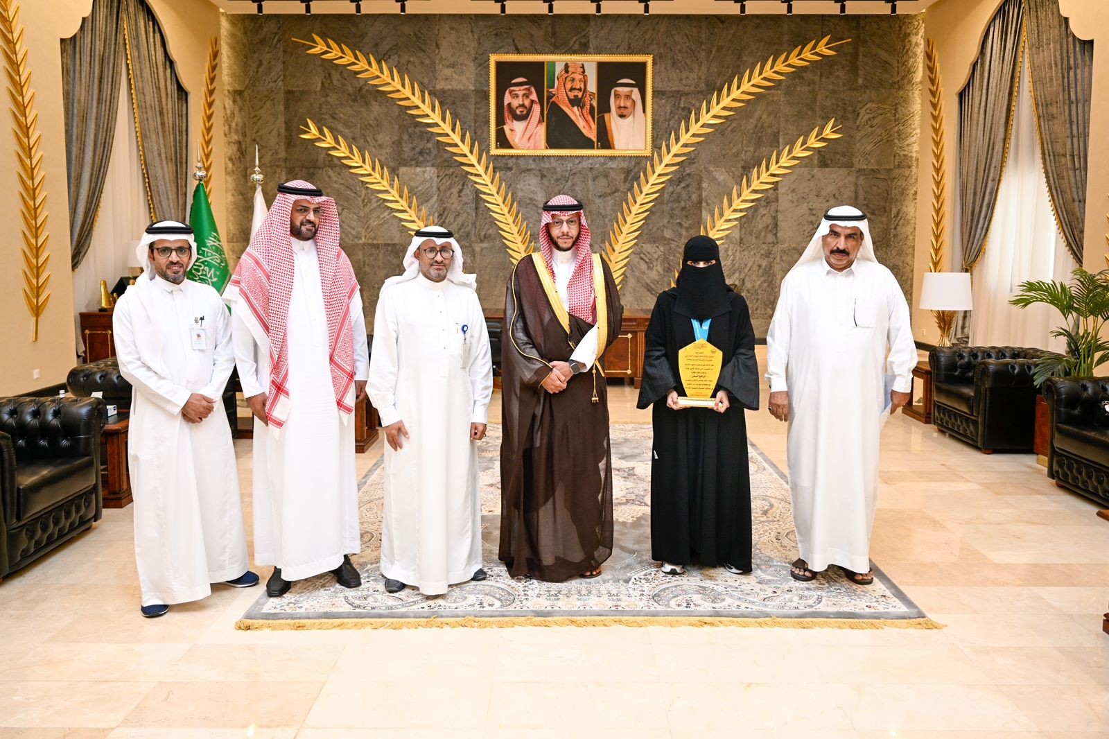 كرم صاحب السمو الملكي الأمير سعود بن نهار بن سعود محافظ الطائف الأخصائية عبير مطر الحارثي مجمع إرادة والصحة النفسية بالطائف والتي حصدت المركز الثاني على مستوى العالم في كوريا الجنوبية باختراعها "نظارة الواقع المعزز"
