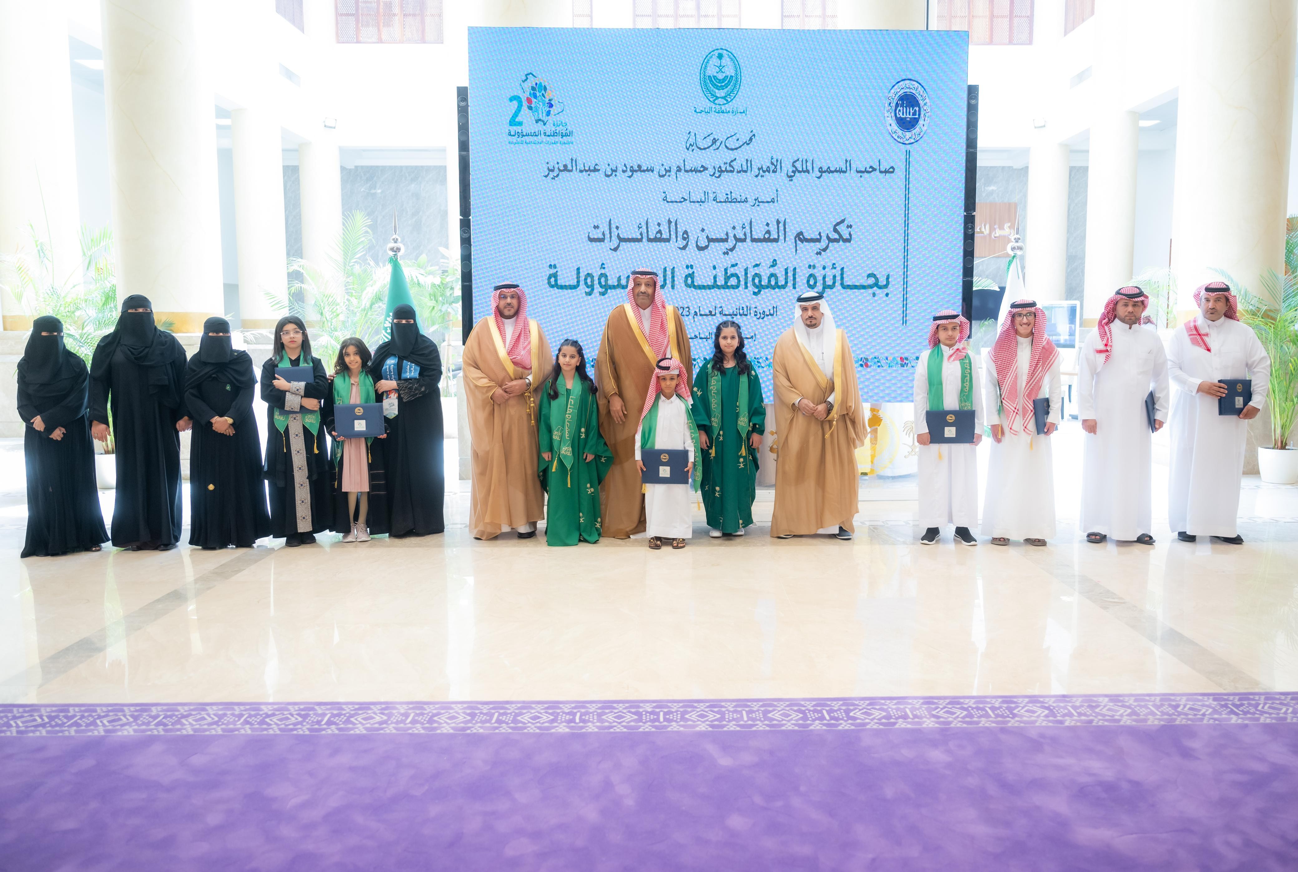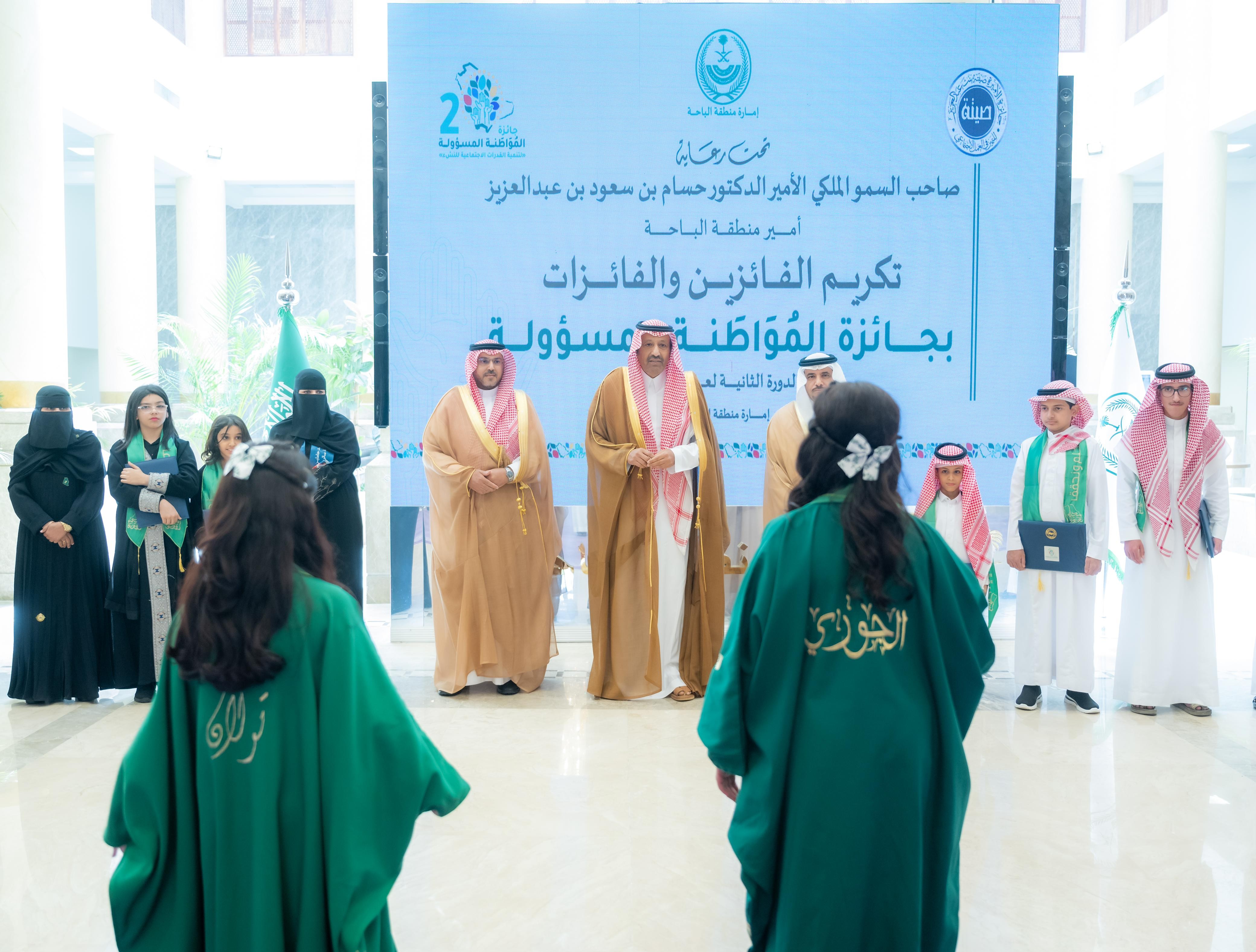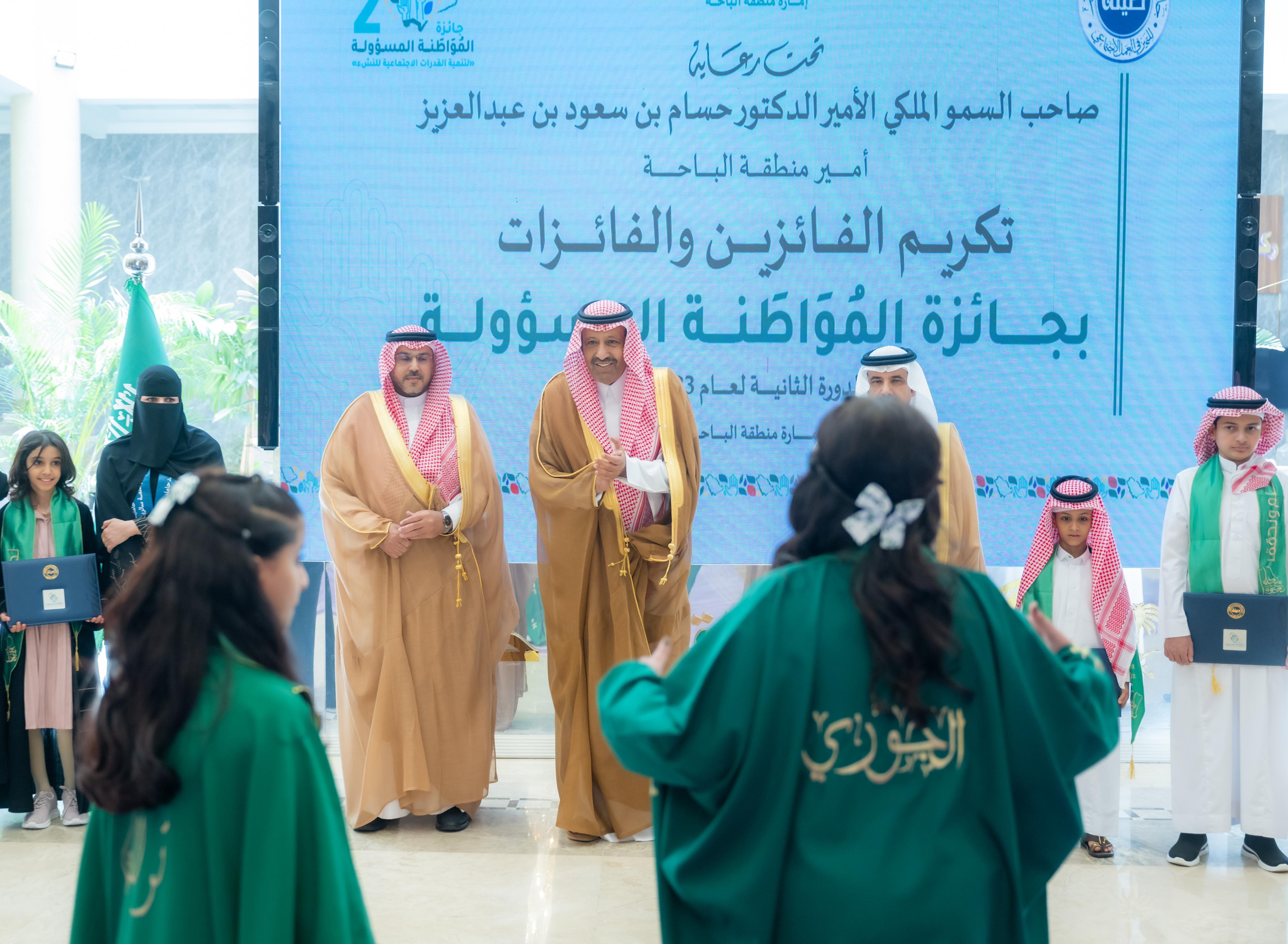 حيث كرّم سموه طلاب وطالبات تعليم المخواة المتوّجين بعدد من المراكز الأولى في ختام التصفيات الأولية لجائزة الأميرة صيتة بنت عبدالعزيز للمواطنة المسؤولة في دورتها الثانية وهم : الطالب سعيد بن أحمد سعيد الزهراني من ابتدائية وادي مدع بالحجرة والحاصل على المركز الثالث في التصفيات الأولية للمسابقة والطالبة فرح موسى عبدالرحمن من ابتدائية قلوة