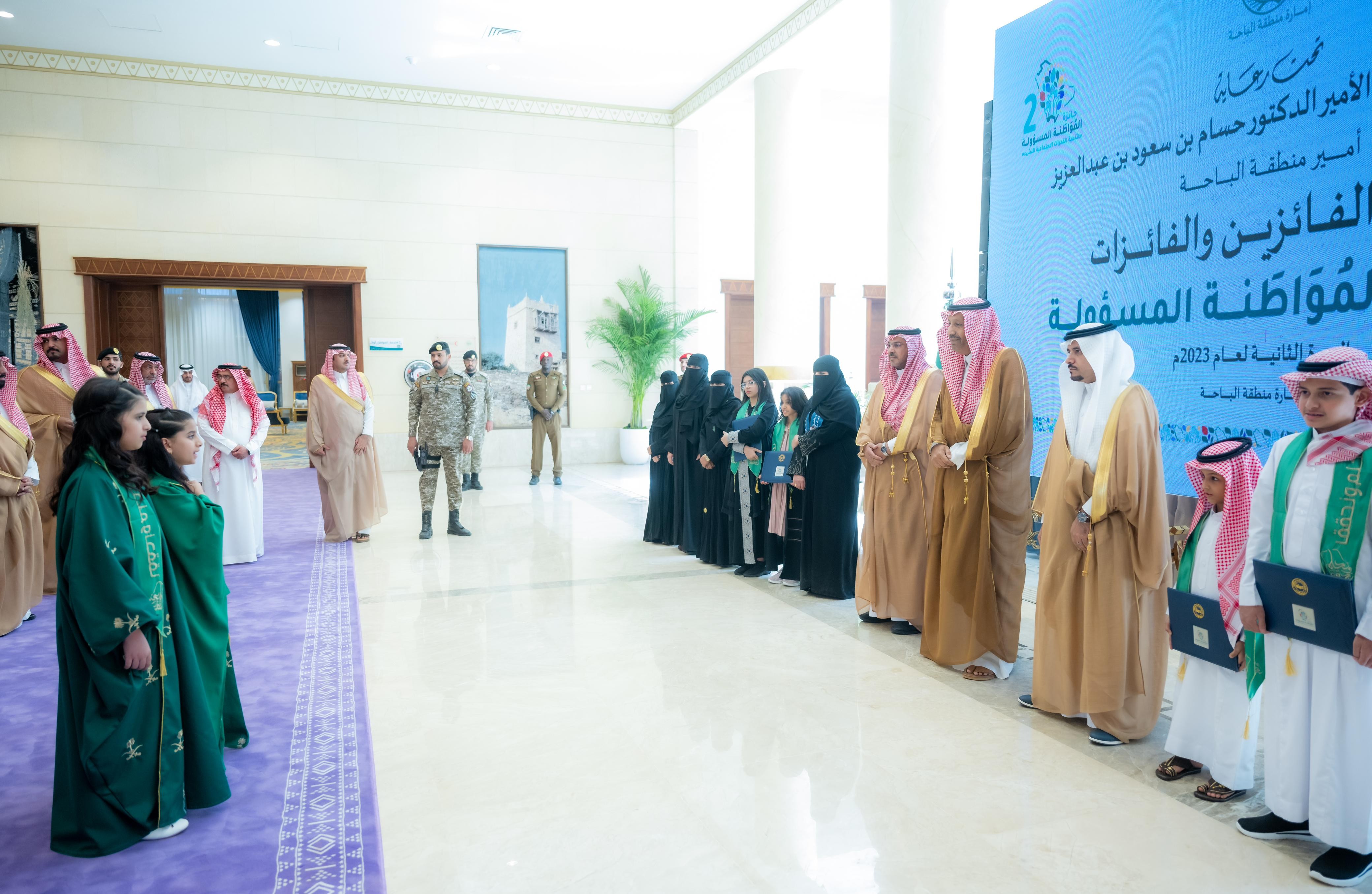 كرّم صاحب السمو الملكي الأمير الدكتور حسام بن سعود بن عبدالعزيز أمير منطقة الباحة، بديوان الإمارة اليوم، الطلاب والطالبات الفائزون بمسابقة الأميرة صيتة بنت عبدالعزيز للمواطنة المسؤولة بحضور مدير عام التعليم بمنطقة الباحة الدكتور عبدالخالق بن حنش الزهراني ومدير التعليم بمحافظة المخواة الدكتور علي بن محمد الجالوق .