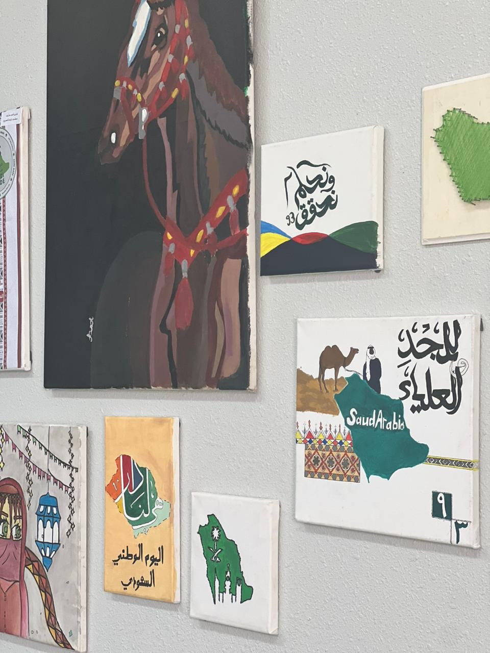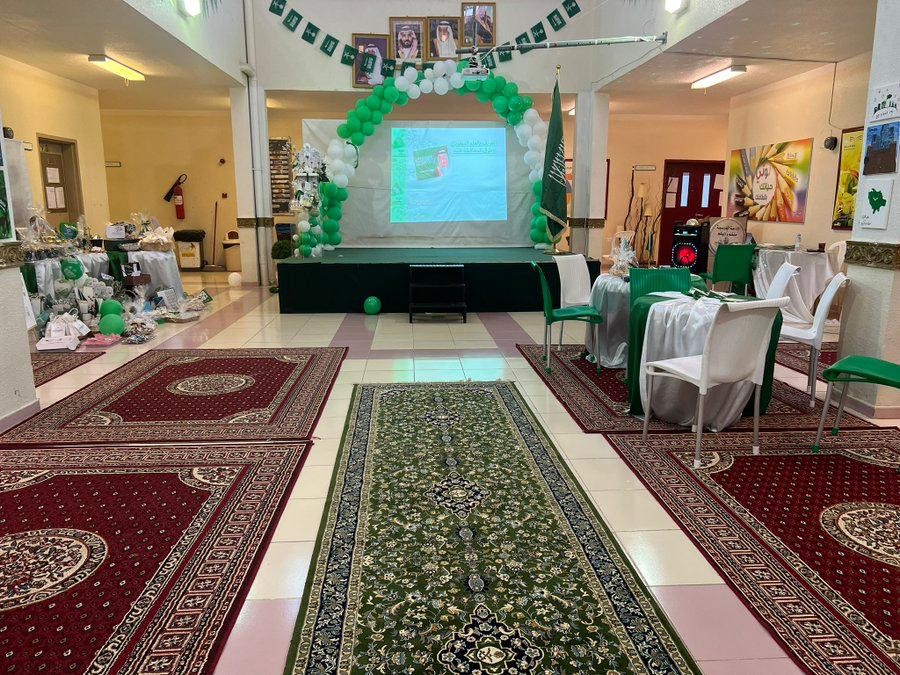 تضمن الاحتفاء عدة محاور : التعريف باليوم الوطني السعودي ، مسابقات ، تصاميم من إنشاء الطالبات ، لوحات فنية .