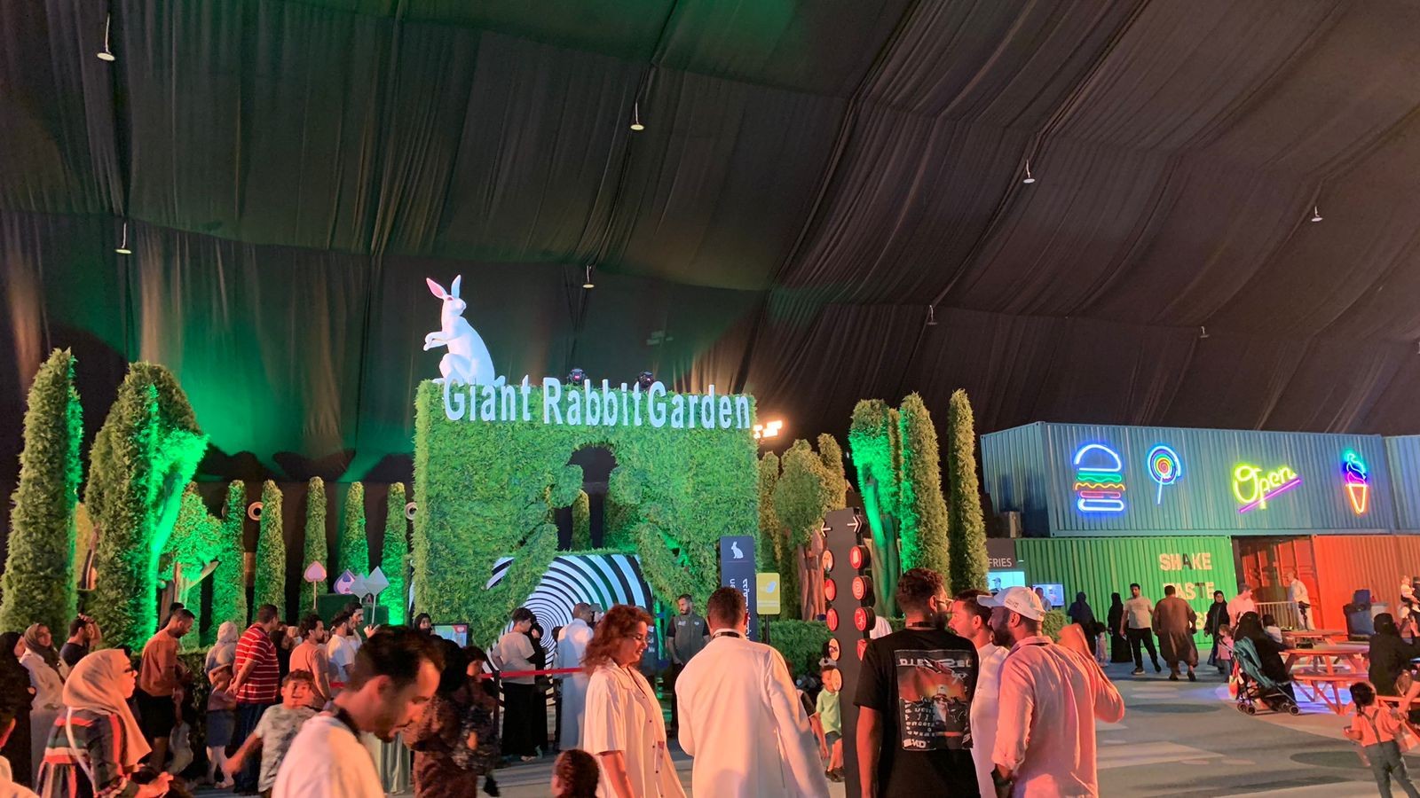 واستمتع الزوار بعدد من العروض، التي تناسب الأذواق والأعمار كافة ضمن باقة من الخدمات المتكاملة؛ كعرض السفاري، والزرافة، والسلاحف، والفرقة الموسيقية، وكذلك عرض الفلامنجو، إضافة إلى تخصيص منطقة لألعاب الذكاء الترفيهية للأطفال والشباب، ومنطقة خاصة للمقاهي والمطاعم المتنوعة.