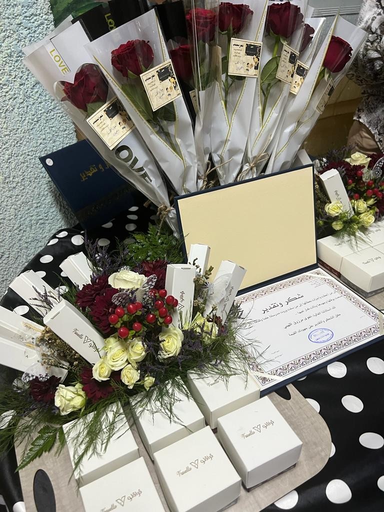 هذا وتم شكر المعلمات وتقديم الهدايا الجميلة لهن وملامسة قلوبهن بالعبارات الجميلة والثناء عليهن من قبل مديرة المدرسة.
