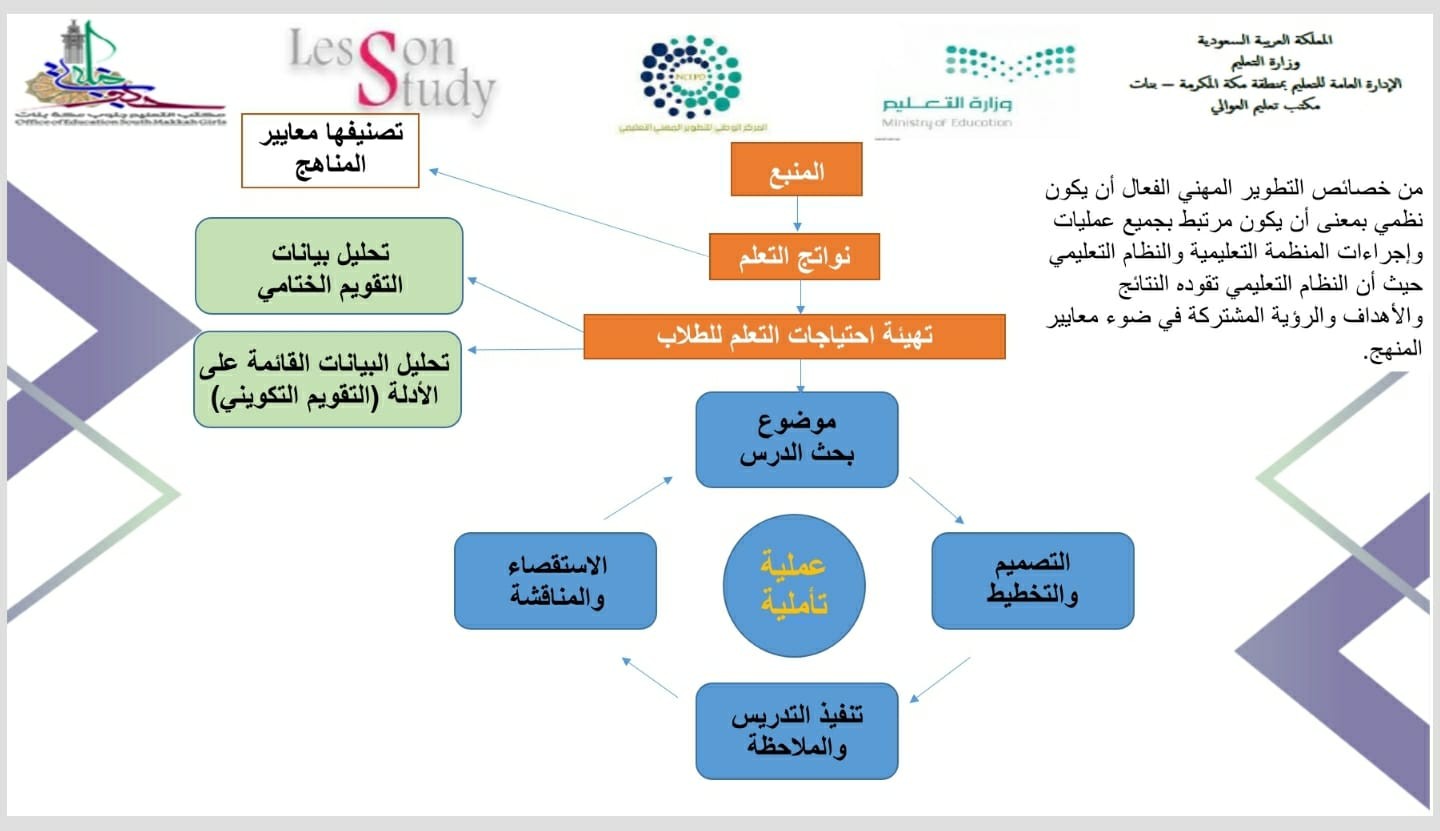 وقد تم خلاله توضيح أهمية التطوير المهني المستمر القائم على ممارسات البحث والاستقصاء التعاوني في تحديد الاحتياجات وتصميم التطوير المهني النوعي والمقصود للمعلمين والمعلمات في ضوء نتائج تحليل البيانات النوعية القائمة على الأدلة حول تعلم الطلاب والتأكيد على تنفيذ بحث الدرس على صورة مجتمعات تعلم مهنية منظمة وفق خطة إجرائية محددة وحث المعلمات على التنفيذ وتقديم الدعم لهن والتعرف على الاتجاهات الحديثة في تقويم عمليات التطوير المهني في ضوء الأهداف ونواتج التعلم و رفع تقارير إجرائية عند تطبيق مشروع بحث الدرس.
