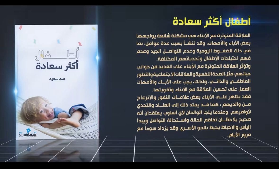 "أطفال أكثر سعادة" تدشنه الكاتبه هند سعود بمعرض الكتاب الدولي بالرياض