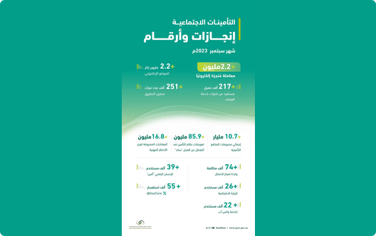 أوضحت المؤسسة العامة للتأمينات الاجتماعية وعبر نشرتها الإحصائية الشهرية، أن عدد المعاملات المنجزة خلال شهر سبتمبر الماضي بلغ أكثر من 2.2 مليون معاملة.