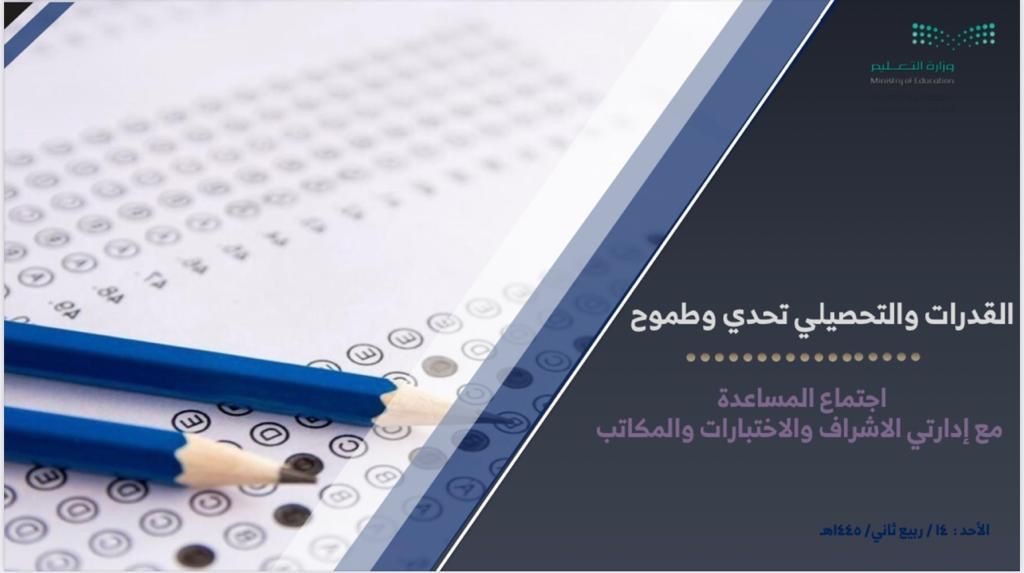 عقدت المساعدة المدير العام للشؤون التعليمية أ. لمياء بشاوري بالإدارة العامة التعليم منطقة مكة المكرمة اجتماعًا مع إدارتي الإشراف التربوي والاختبارات والقبول ومكاتب التعليم اليوم الأحد الموافق 1445/4/14هـ تحت شعار " القدرات والتحصيلي تحدي وطموح" حيث أوضحت من خلال كلمتها الافتتاحية : أن الارتقاء بالمستوى التعليمي لكل طالب في البلاد هو أحد الأهداف البالغة الأهمية ، التي تضعها الحكومات في جميع أنحاء العالم ، حيث يوكل إلى صانعي القرارات التربوية هذه المهمة الصعبة والنبيلة ، والتي تؤثر بشكل كبير في مستقبل البلاد وحاضرها ، فهناك إدراك متزايد من الحكومات حول العالم أنه وفي ضوء عدم معرفتنا ما قد يحمله المستقبل ، فإن التعليم الجيد هو الضمانة الوحيدة التي تؤمن ركيزة متينة للشعوب وتحضرهم للمستقبل .