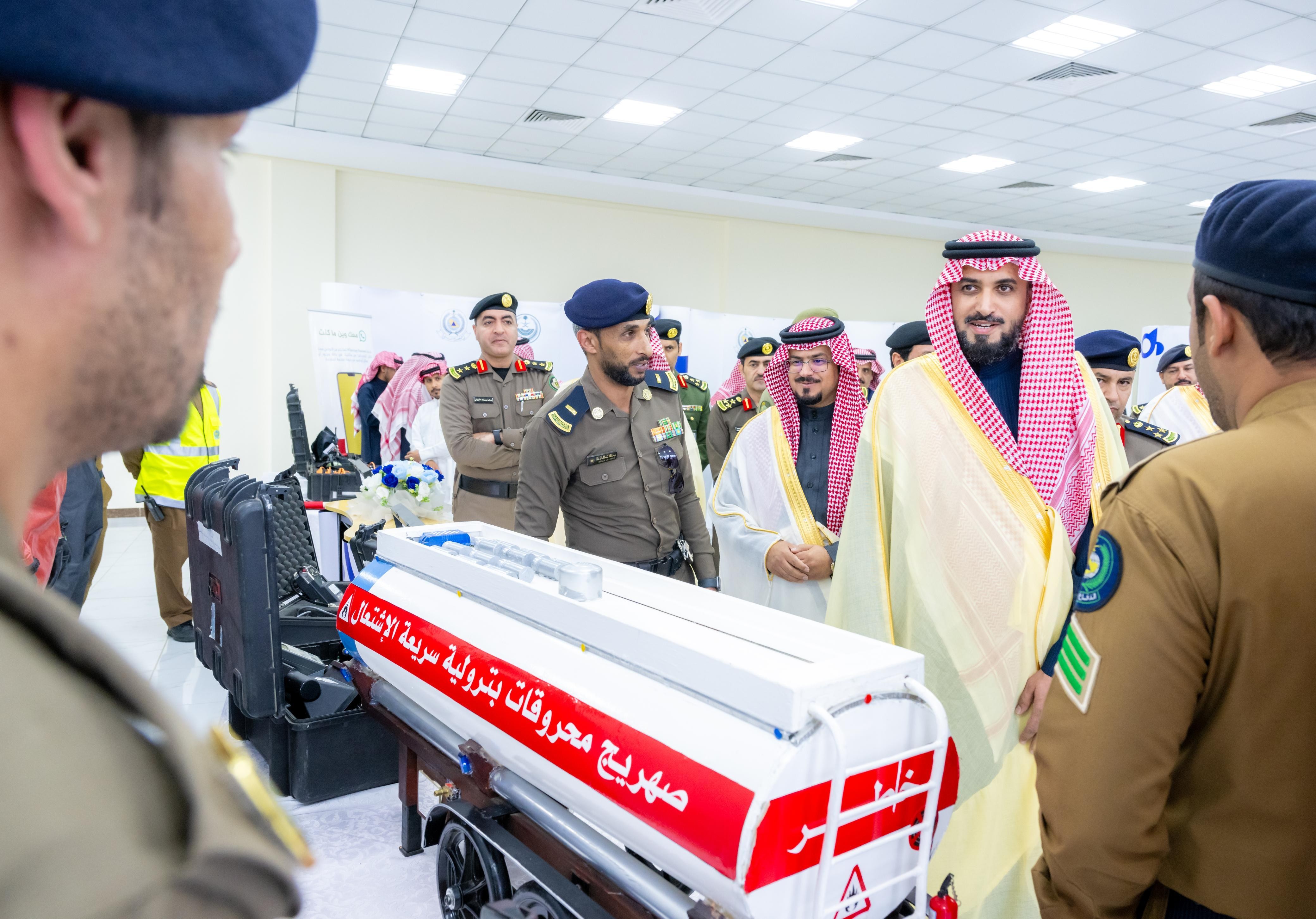 واطلع الحضور على آليات الدفاع المدني والمعرض المصاحب للفعاليات الذي تضمن مشاركة 12 ركناً لعدد من الجهات الحكومية والخاصة، مستمعاً لشرح مفصل من مدير الدفاع المدني بمنطقة الباحة العميد محمد العنزي عن الأجهزة الحديثة والآليات والمعدات الفنية في مجال الإنقاذ والإسعاف واللوحات التوعوية وأجنحة الجهات الحكومية والأهلية المشاركة في الاحتفال.