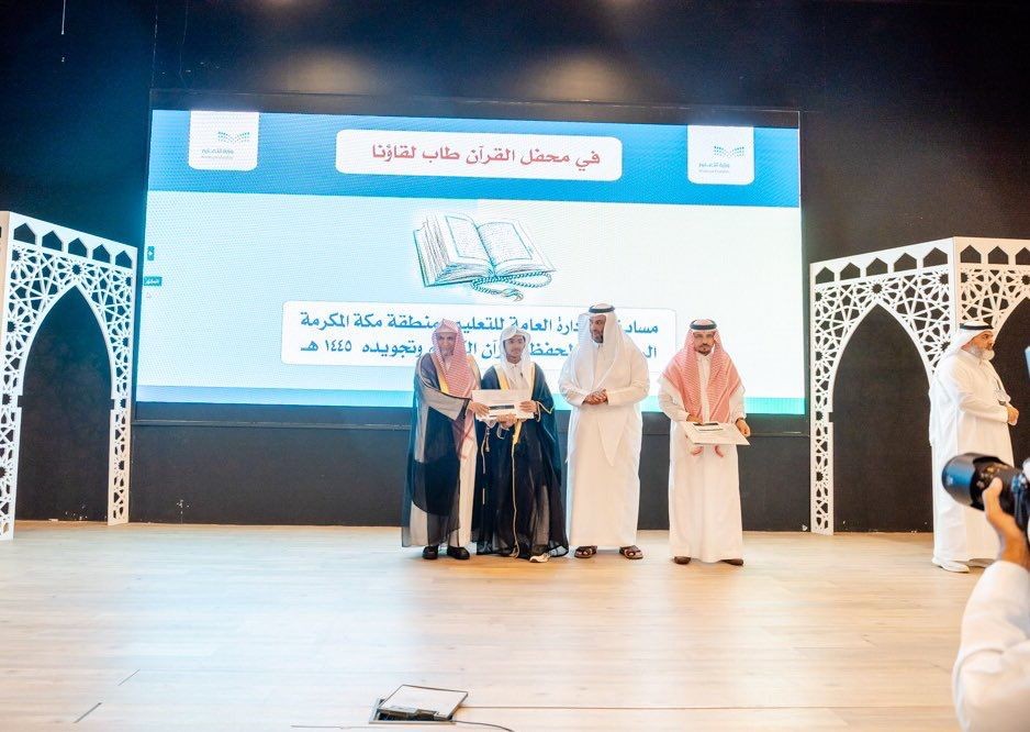 برعاية معالي الشيخ الدكتور صالح بن عبدالله بن حميد إمام وخطيب المسجد الحرام والمستشار في الديوان الملكي ، وحضور المدير العام للتعليم بمنطقة مكة المكرمة الأستاذ عبدالله بن سعد الغنام ومساعدوه ومدراء مكاتب التعليم والإدارات والأقسام ؛ اختتمت اليوم الخميس 18 رمضان 1445 في قاعة الملك فهد -رحمه الله - المسابقة الرمضانية لحفظ القرآن الكريم وتجويده بالإدارة العامة للتعليم بمنطقة مكة المكرمة