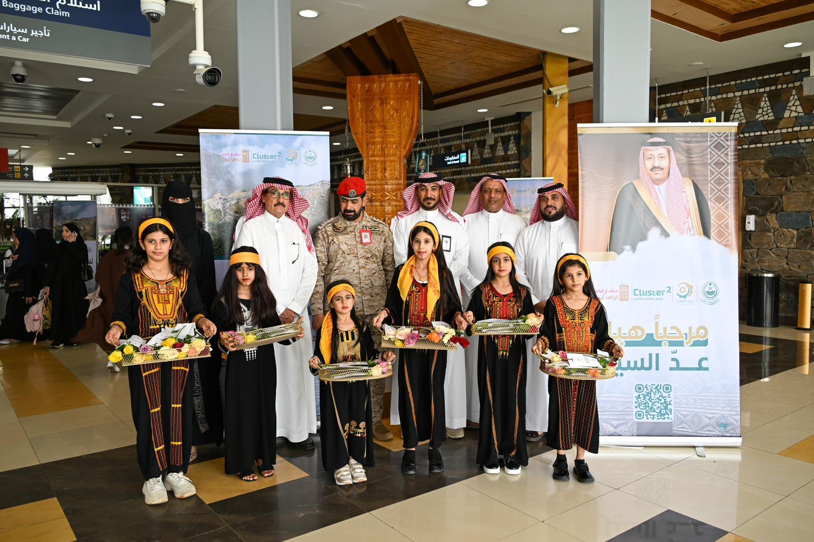 مطار الملك سعود بالباحة يستقبل الزوار بالورود