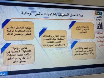 حيث اشتملت المحاور : التعريف بأهداف اختبار نافس الوطني ، التعريف بالمواد والمهارات المستهدفة في اختبار نافس الوطني ، و توعية الطالبات بأهمية اختبار نافس الوطني.