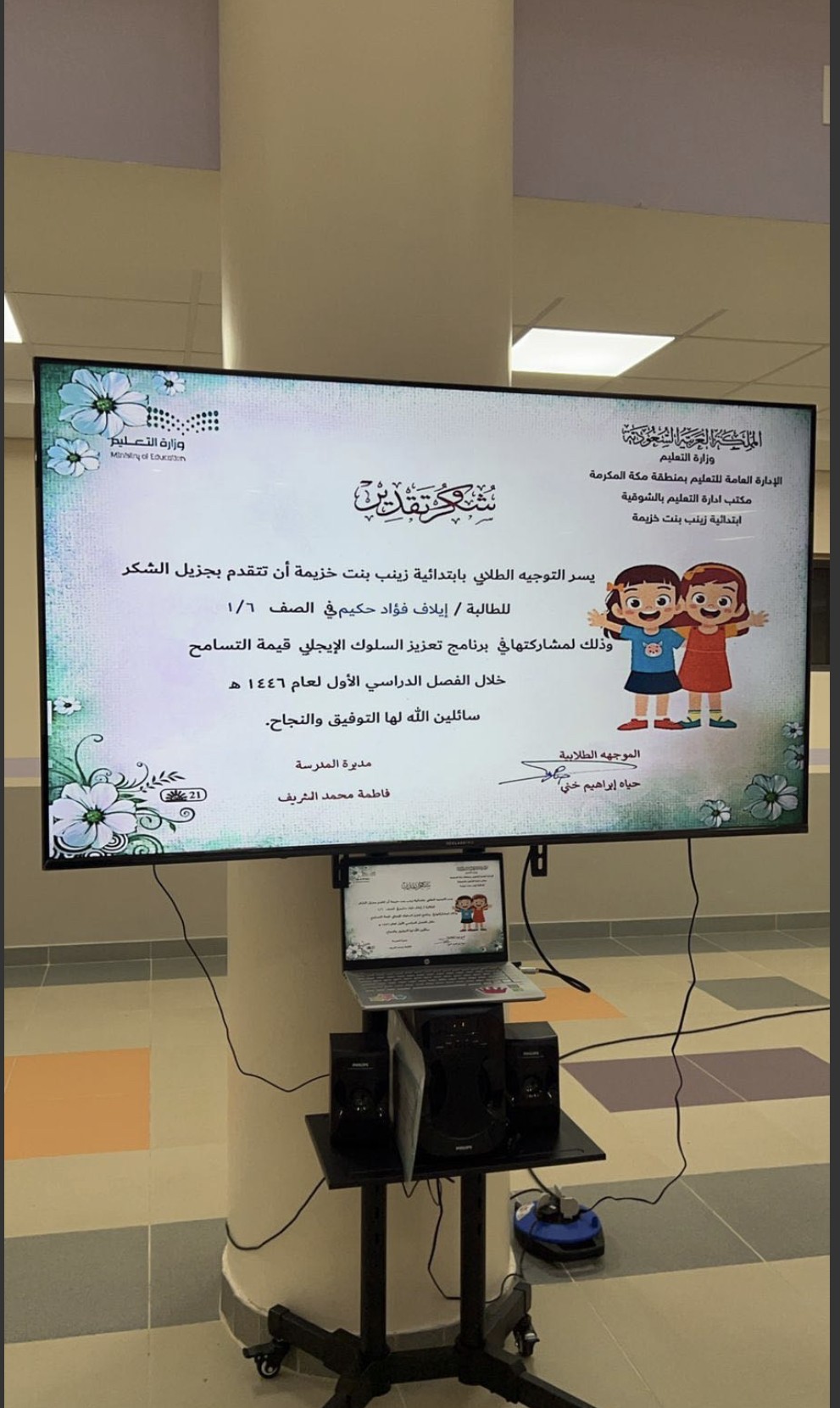 نفذت ابتدائية زينب بنت خزيمة التابعة لمكتب تعليم الشوقية بالإدارة العامة للتعليم بمنطقة مكة المكرمة، برنامج الانضباط المدرسي بعنوان (نجوم لا تغيب)، من الأحد وحتى الخميس الموافق 21/2/1446 هـ إلى 16/3/ 1446 هـ، نفذته الموجهة الطلابية حياة إبراهيم بمساندة المعلمات والطاقم الإداري بساحة المدرسة،
