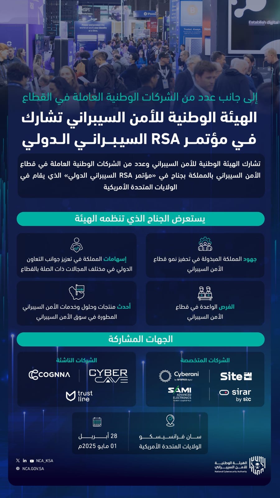 الهيئة الوطنية للأمن السيبراني تشارك في «مؤتمر RSA السيبراني الدولي»