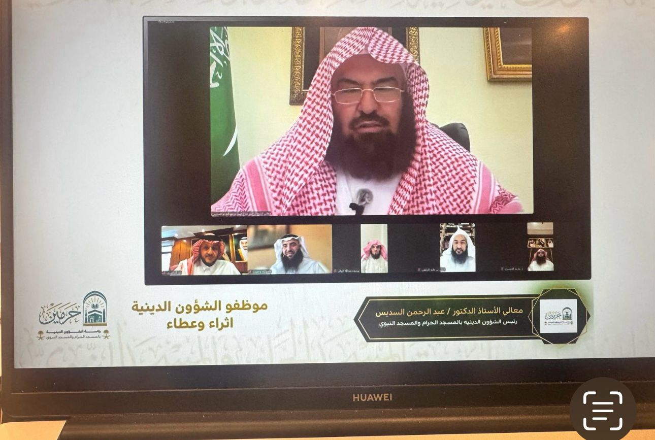 وهنأ معاليه في كلمته التي ألقاها في حلقة النقاش عن بُعد بعنوان "موظفو الشؤون الدينية إثراء وعطاء"؛ المنسوبين والمنسوبات المفرَّغين لملاك الرئاسة. مؤكدًا على ضرورة استمرارهم في المثابرة والاجتهاد والإخلاص؛ لإثراء تجربة القاصدين والزائرين، وإيصال رسالة الحرمين للعالم باللغات المختلفة.