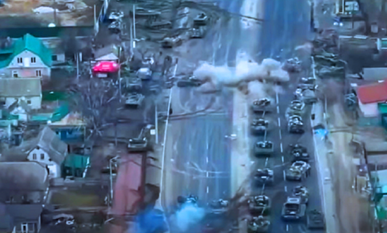 وظهر ما حدث للرتل واضحا في فيديو صوّرت مشاهده طائرة “درون” روسية مسيرّة من دون طيار، بعد أن حصل الجيش الأوكراني على نسخة منه، وجدت طريقها سريعا الى حيث اكتظت به مواقع التواصل ووسائل الاعلام.
