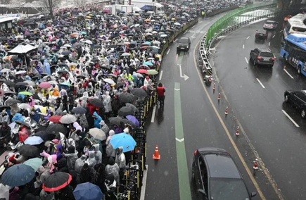 وتجمع بعض المحتجين اليوم الأحد طوال الليل في وسط مدينة سول، حيث انخفضت درجات الحرارة إلى أقل من خمس درجات مئوية تحت الصفر، فيما تراكمت الثلوج بسمك يتجاوز خمسة سنتيمترات في بعض أنحاء العاصمة التي حذرت الأرصاد الجوية من أنها ستكون معرضة لهطول ثلوج كثيفة.