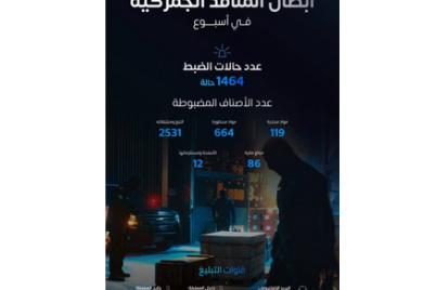 في إطار سعيها المتواصل لتعزيز الأمن وحماية المجتمع، أعلنت هيئة الزكاة والضريبة والجمارك "زاتكا" عن ضبط 1464 حالة تهريب ممنوعات...
