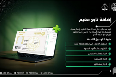 أتاحت منصة "أبشر" خدمة جديدة تُمكّن رب الأسرة المقيم من إصدار هوية مقيم لأحد أفراد أسرته من حاملي رقم...
