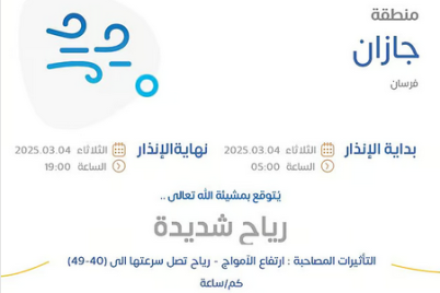 نبّه المركز الوطني للأرصاد اليوم من هبوب رياح شديدة على محافظة جزر فرسان بمنطقة جازان، تشمل تأثيراتها المصاحبة ارتفاعًا في...