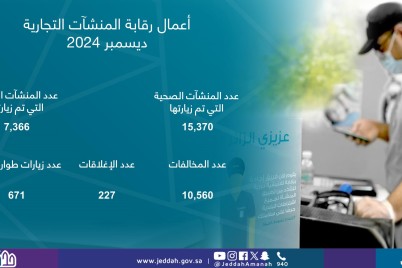 متابعات_عبدالرحمن المحمادي نفذت أمانة محافظة جدة خلال شهر ديسمبر أكثر من 22 ألف جولة رقابية، على المنشآت التجارية والصحية...