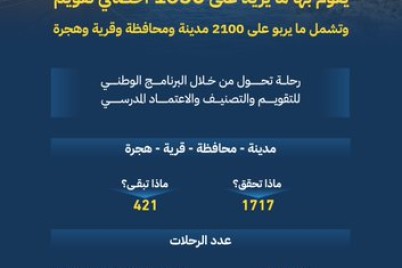 أعلنت هيئة تقويم التعليم والتدريب عن إنجازها أكثر من 450 ألف رحلة تقويم خارجي شملت أكثر من 24 ألف مدرسة...