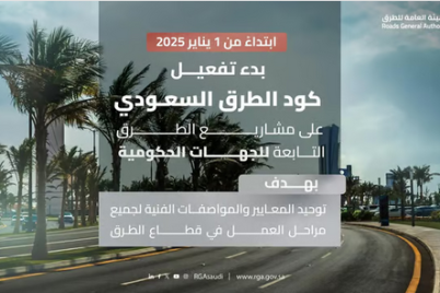 أعلنت الهيئة العامة للطرق، تفعيل كود الطرق السعودي على مشاريع الطرق التابعة للجهات الحكومية؛ ابتداءً من 2025/1/1 م؛ حيث سيتم...