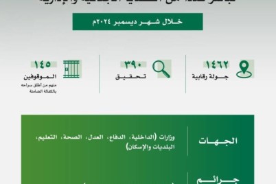 باشرت هيئة الرقابة ومكافحة الفساد "نزاهة" عدداً من القضايا الإدارية والجنائية خلال شهر ديسمبر 2024، تضمنت التحقيق مع 390...