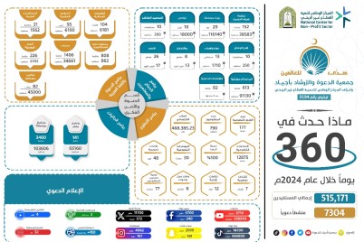 متابعات - محمود حميد بلغ عدد المستفيدين من برامج وأنشطة جمعية الدعوة والإرشاد وتوعية الجاليات بأجياد في مكة المكرمة (515.171)...