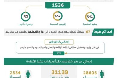 أعلنت وزارة الداخلية، أن الحملات الميدانية المشتركة ضبطت 23194 مخالفًا لأنظمة الإقامة والعمل وأمن الحدود خلال أسبوع. وأوضحت الوزارة،...