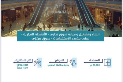 الخفجي - فهد الشراوي طرحت بلدية محافظة الخفجي فرصه استثمارية انشاء وتشغيل وصيانة سوق تجاري، بالخفجي بمساحة 20،000 مربع ،...