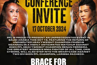 الحدث ــ فوز العتيبي تعقد رابطة المقاتلين المحترفين (PFL) لمنطقة الشرق الأوسط وشمال إفريقيا, مؤتمراً صحفياً عند الساعة الثانية من ظهر...