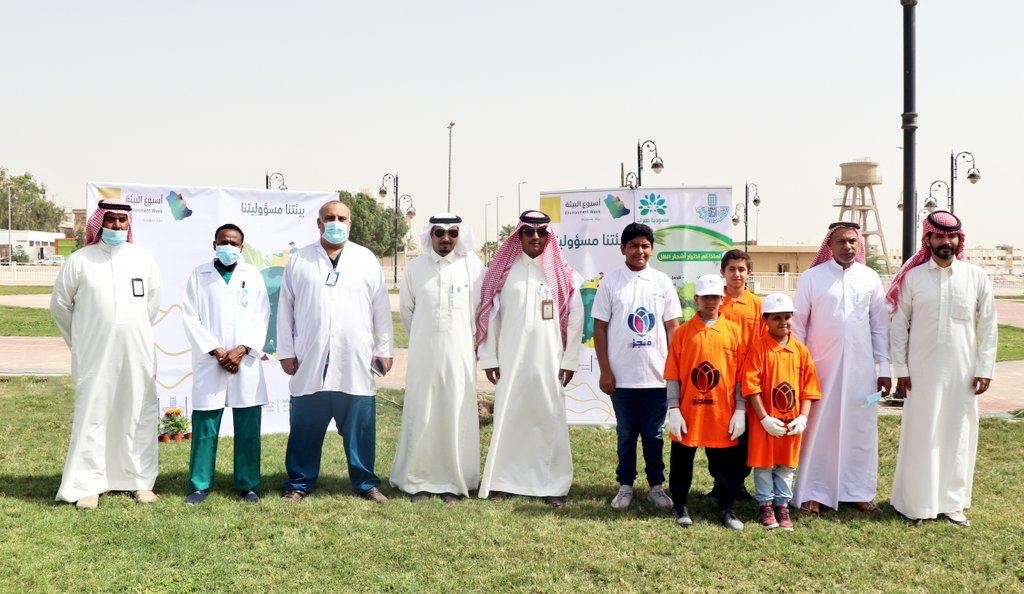 بالتعاون مع وزارة البيئة والمياه والزراعة ومشاركة من إدارة التعليم بالمحافظة ومجمع عيادات النعيرية الطبي وفريق منجز التطوعي .