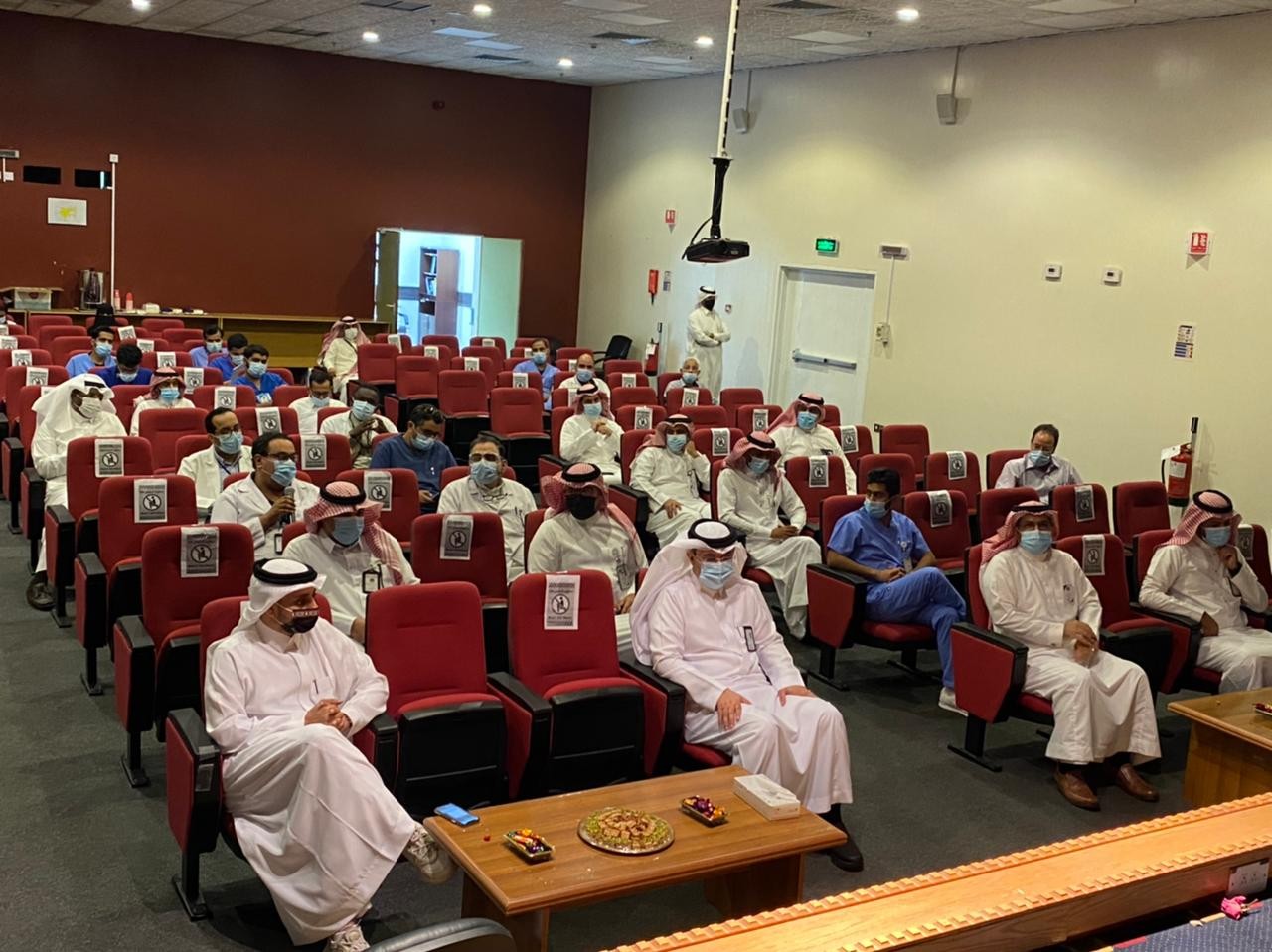 وقد ألقى المشرف العام على المجمع كلمة بهذه المناسبة قدم فيها جزيل الشكر والتقدير للعاملين المكلفين والمناوبين خلال إجازة عيد الفطر المبارك ، مؤكداً على أهمية المرحلة القادمة من العمل وتقديم الخدمة العلاجية المناسبة للمستفيدين والمراجعين.