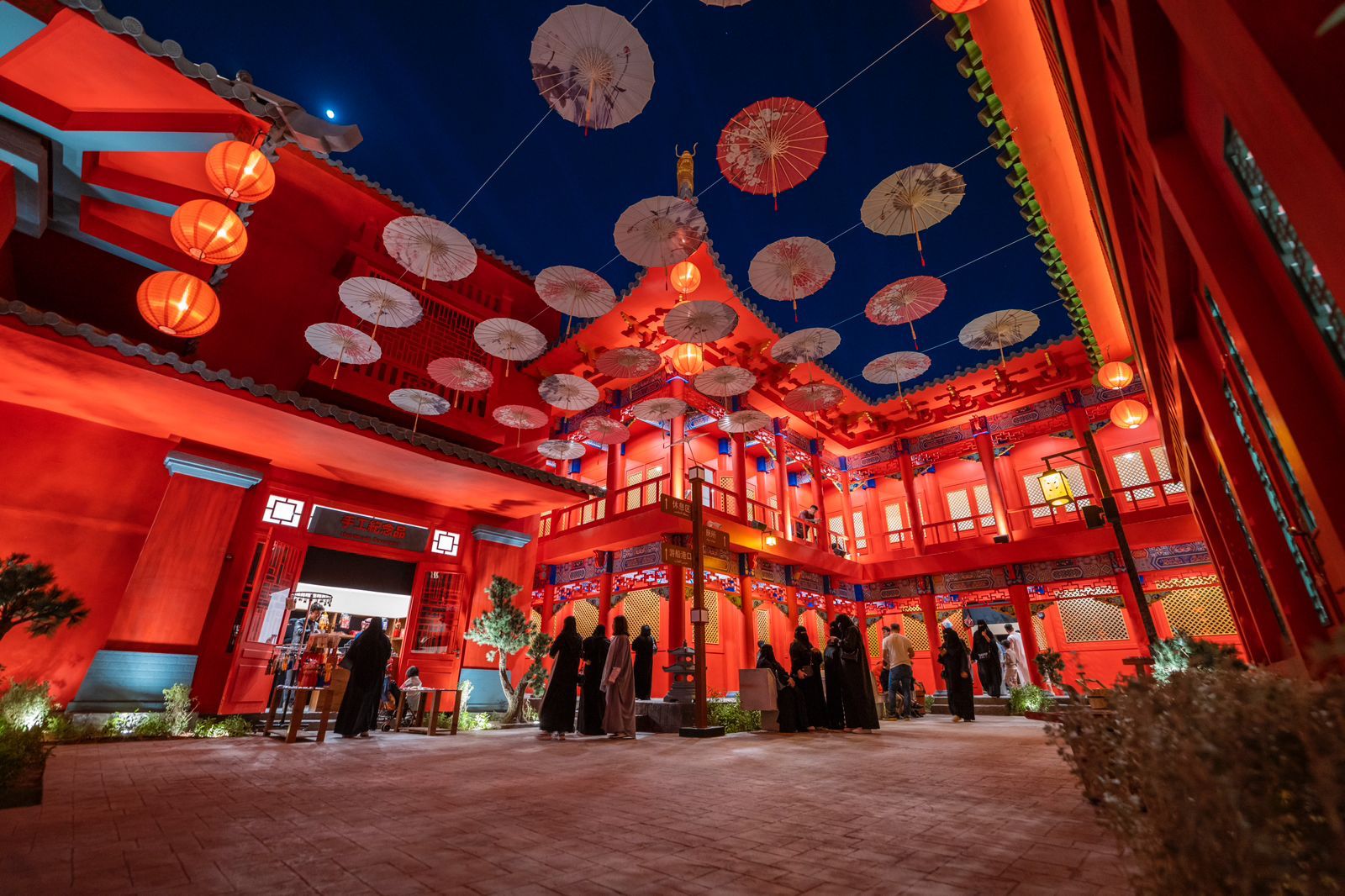 وتشكل المظلات الصينية أحد معالم المنطقة التي تبرز من خلال ألوانها ورسوماتها المدلولات العميقة والرمزية لها، كما تبهرك الفوانيس الضوئية المعلقة، وتتعرف عن قرب على استخدام المراوح الهوائية وطياتها السريعة، كما ستجرب الأزياء التقليدية والرقصات الفلكلورية، إضافة إلى الاستفادة من فنون الخط الصيني والحصول على لوحة ممهورة باسمك فيها.