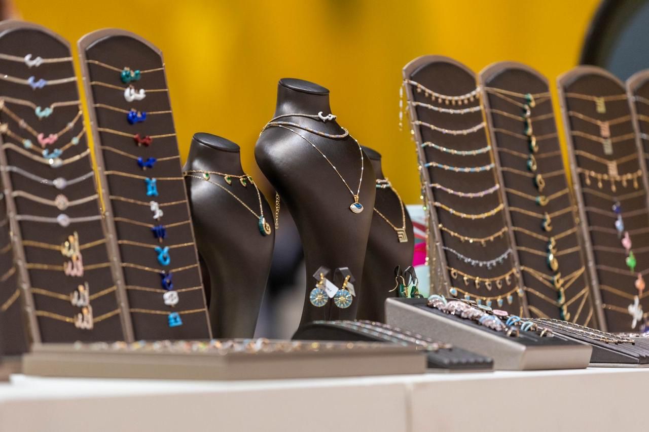وتشارك السيدة نجود السعداوي إحدى المصممات العربيات في المعرض بمجوهراتها التي تتمتع بتصاميم رائعة، حيث عملت في مجال التصميم منذ عام 2020، واستطاعت خلال عامين إثبات نفسها في المجال وتطوير مهاراتها بعد استشارات المختصين في تصميم الذهب والمجوهرات.