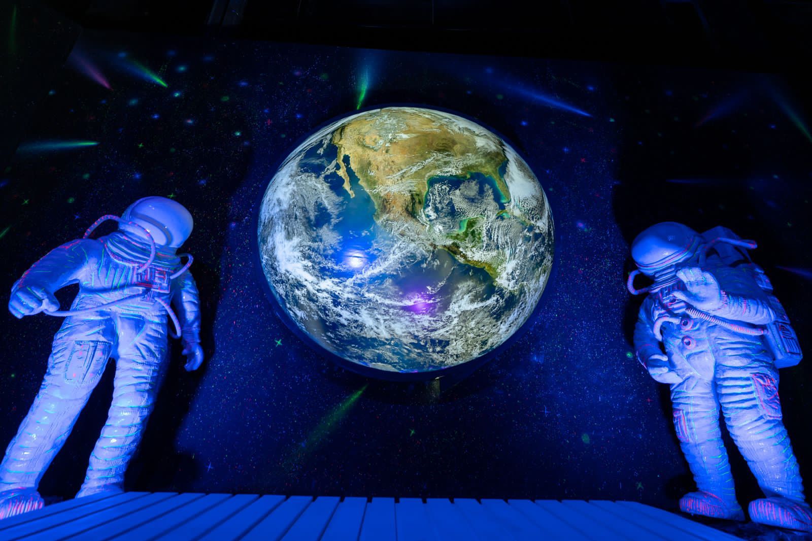 وتتنوع التجربة الفضائية المثيرة بين تجربة السير على سطح القمر، واستكشاف مجرة درب التبانة والنظام الشمسي، إلى مشاهدة الانفجار العظيم، وملاحظة تضاريس كوكب المريخ، ليعيش الزوار أوقاتًا من الانبهار والدهشة بمجرد الدخول إلى عالم الفضاء وعجائبه المتنوعة والغامضة.