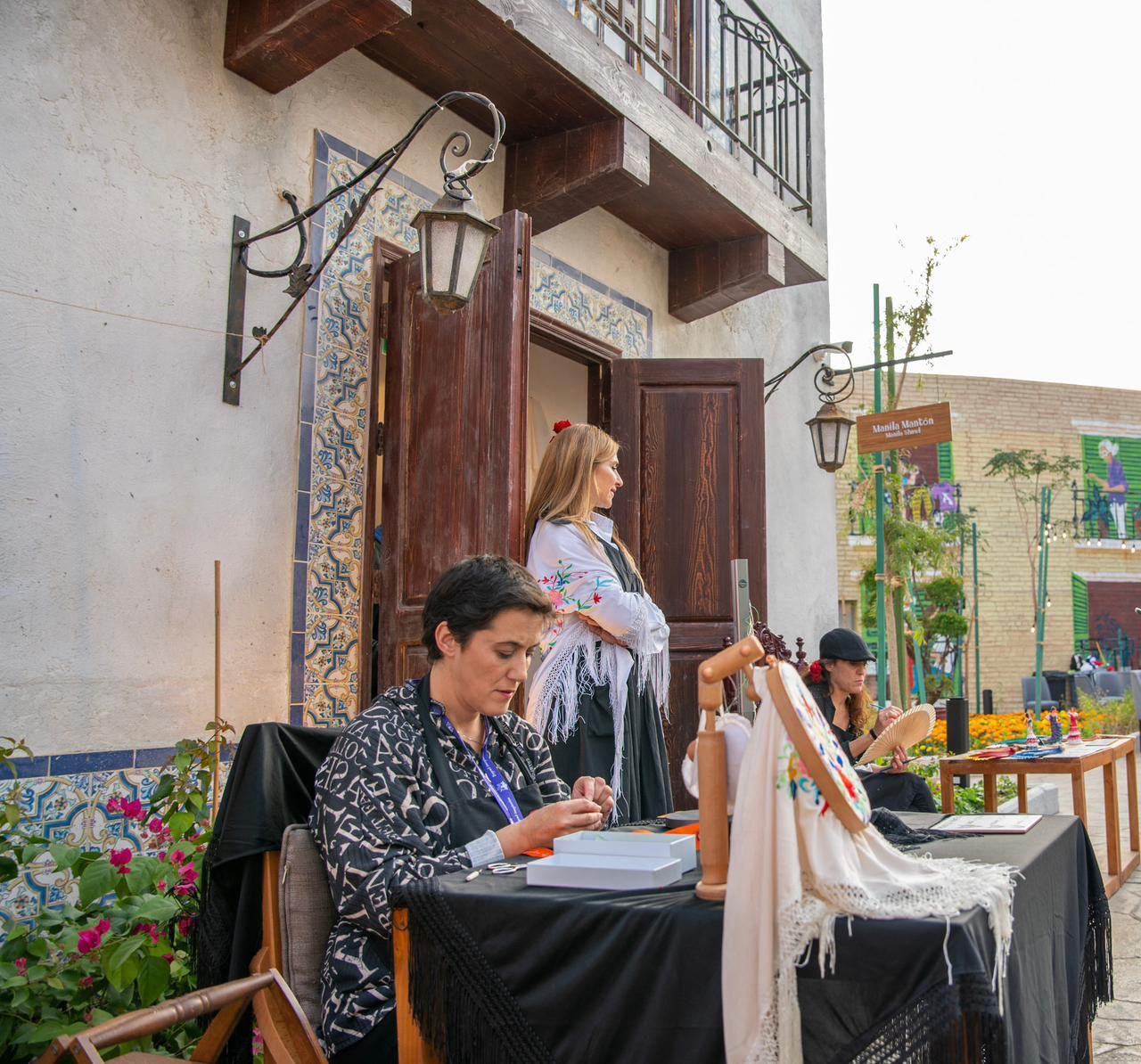 وضمن هذا المجال، تقضي السيدة الإسبانية "تاتيانا راموس" وقتها الحالي في رُكنها المقام في المنطقة الإسبانية ببوليفارد وورلد، لتستعرض أمام زوارها إبداعاتها في واحدة من أقدم المهن في أوروبا، المتعلقة بأقمشة الحرير الفاخر، الذي يُعد أساسًا من أسس الأزياء الإسبانية التراثية.