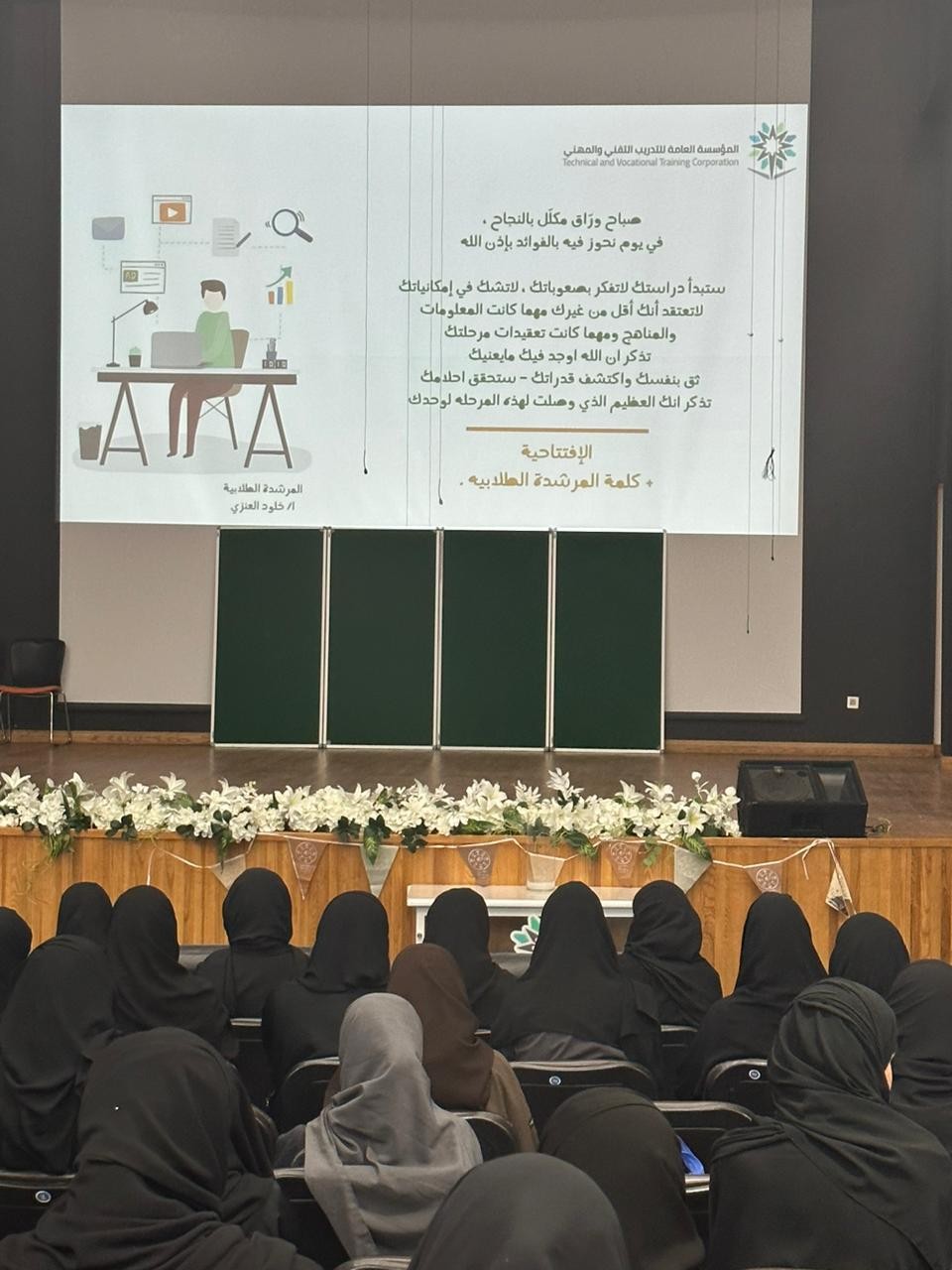 هذا وقد جرى خلال البرنامج توضيح خدمات التوجيه والإرشاد، كذلك التعريف بإجراءات القبول والتسجيل في الكلية وشرح برنامج رايات والتدرب الإلكتروني والتعريف بصندوق المتدربين، لوائح السلوك والمخالفات، تخصصات الكلية، تخللها إقامة ورشة تحفيزية عن أهمية العمل التطوعي، كما اختتم البرنامج بتوجيه جميع المتدربات من خلال قنوات التيليجرام للرد على الاستفسارات المطروحة.