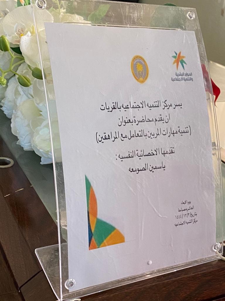 مركز تنمية القريات يقيم المحاضرة التوعوية "تنمية مهارات المربين بالتعامل مع المراهقين"