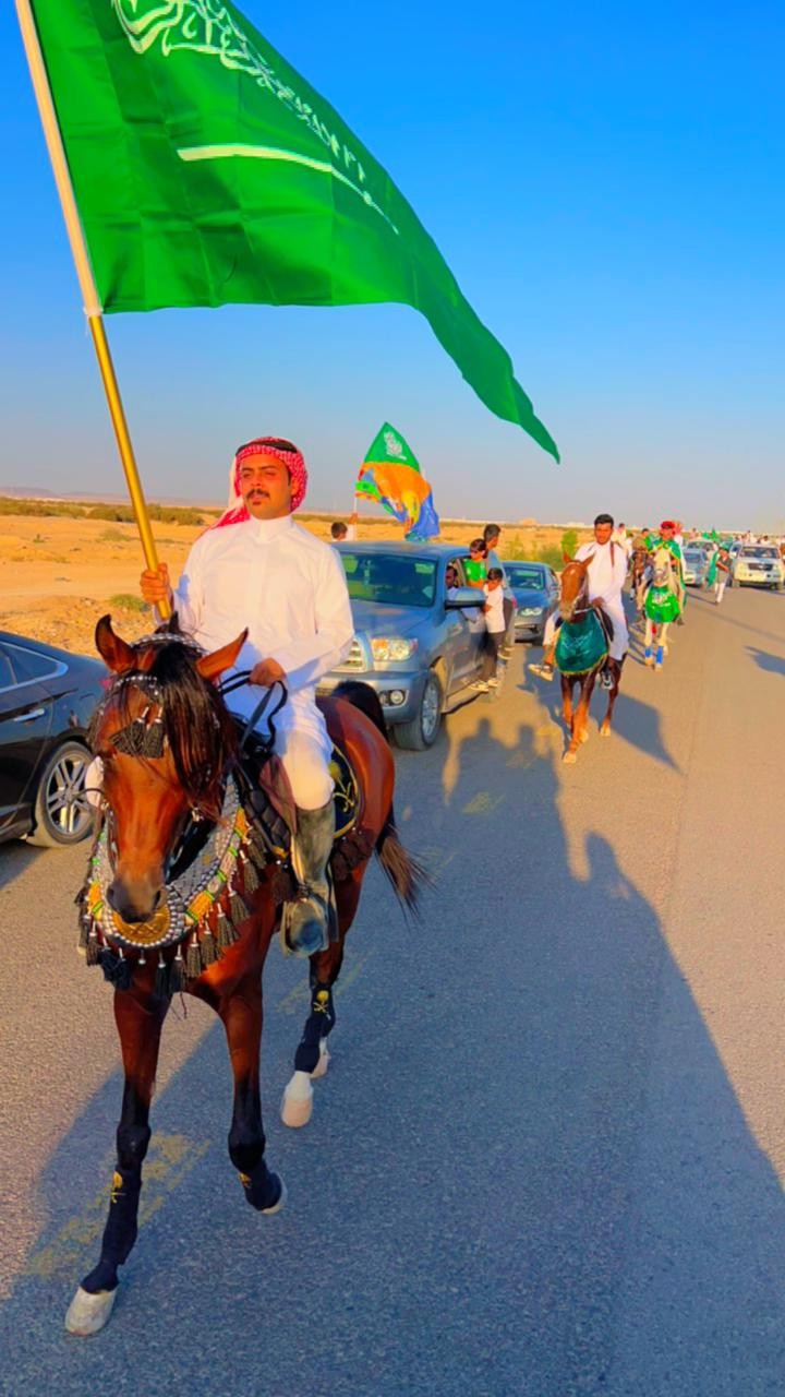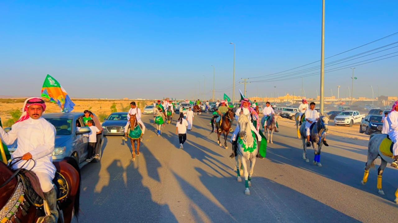 انطلاق مسيرة فريق فرسان القريات احتفالاً باليوم الوطني السعودي 93