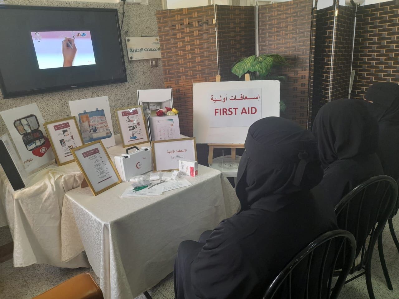 ونظمت مسؤولة الصحه ركن توعوي شمل بطاقات توضيحية للاسعافات الاولية “الحروق والغرق والجروح وحالات الإغماء وغيرها” ودعم البرنامج بفيديو خاص للحالات الطوراى وطرق الاسعاف وتم حضور الموظفات مع المستفيدات والمراجعات ودار نقاش بينهم عن طرق الاسعافات الطبيعيه والاسعافات الطبيه من خلال التجارب السابقه لهم تم الاستفاده .