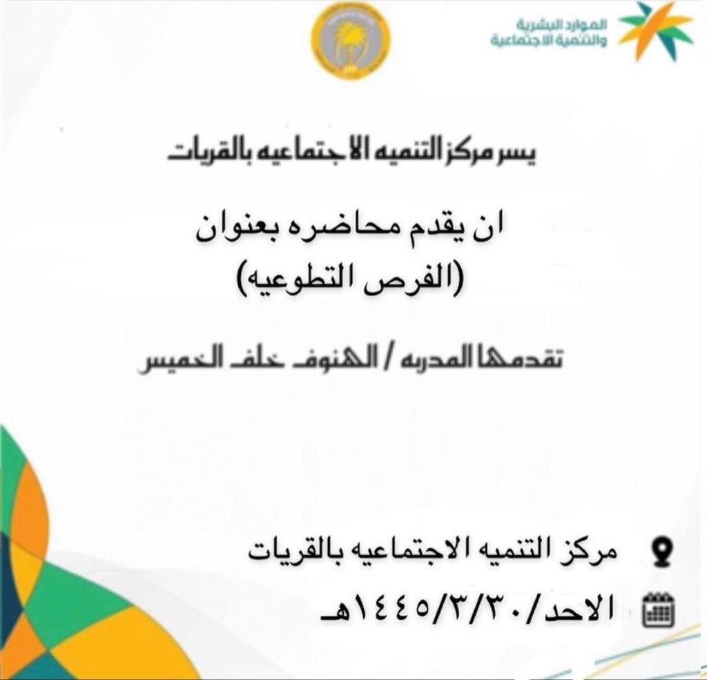 تنمية القريات تقيم دورة عن الفرص التطوعية لمنسوبات مركز التنمية