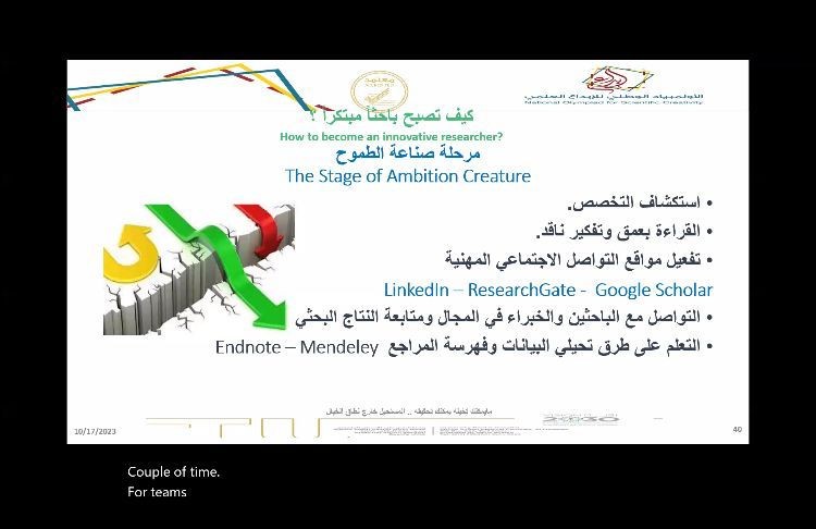 ضمن استعدادات الادارة العامة للتعليم في محافظة الطائف للأولمبياد الوطني للإبداع 2024 نفذت إدارة الموهوبات ورشة عمل بعنوان " كيف تكون باحثاً مبدعاً ومبتكراً " والتي تستهدف الطالبات الموهوبات في المرحلتين المتوسطة والثانوية . حيث تضمن محتوى الورشة التي قدمها أستاذ الفيزياء الإشعاعية الطبية المساعد في جامعة الطائف على تعريف الابتكار و مفهوم براءة الاختراع والحقوق التي تمنحها .