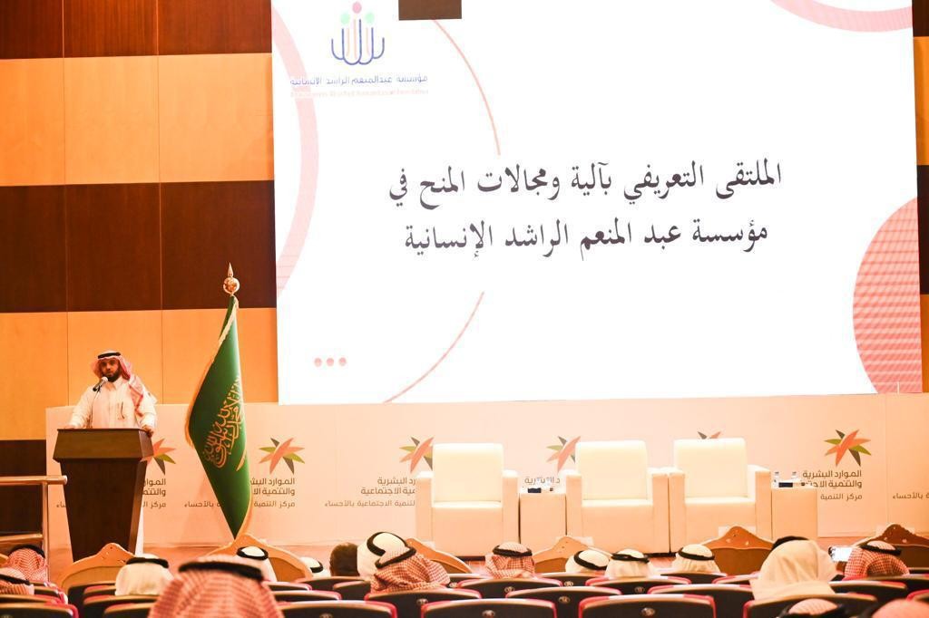 نظمت مؤسسة عبدالمنعم الراشد الإنسانية الملتقى التعريفي بآلية المنح التي تقدمها المؤسسة، بالتعاون مع مركز التنمية الاجتماعية بالأحساء، وذلك في مسرح المركز بحضور مدير المركز مساعد السعيد