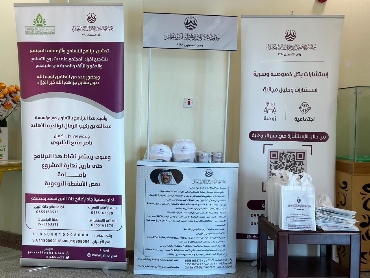 فيما شاركت جمعية جاه لإصلاح ذات البين بركنٍ توعوي يشجع أفراد المجتمع على بث روح التسامح والتآلف والعفو والمحبة في ما بينهم بالإضافة إلى الروضة الخامسة والثلاثون وكافي QR CAFE .