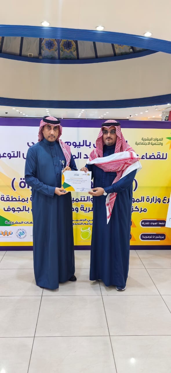 فعل فرع وزارة الموارد البشرية والتنمية الاجتماعية بمنطقة الجوف ممثلا بمركز الحماية من العنف الأسري وحماية الطفل اليوم العالمي لمناهضة العنف ضد المرأة وذلك برعاية سعادة المدير العام الاستاذ /نايل بن عبدالعزيز الرويلي وتدشين المعرض التوعوي بمشاركة عدد من الجهات ذات العلاقة من خلال أركان تعريفية والذي يستمر لمدة ثلاثة أيام بمجمع الجوف بلازا بسكاكا.