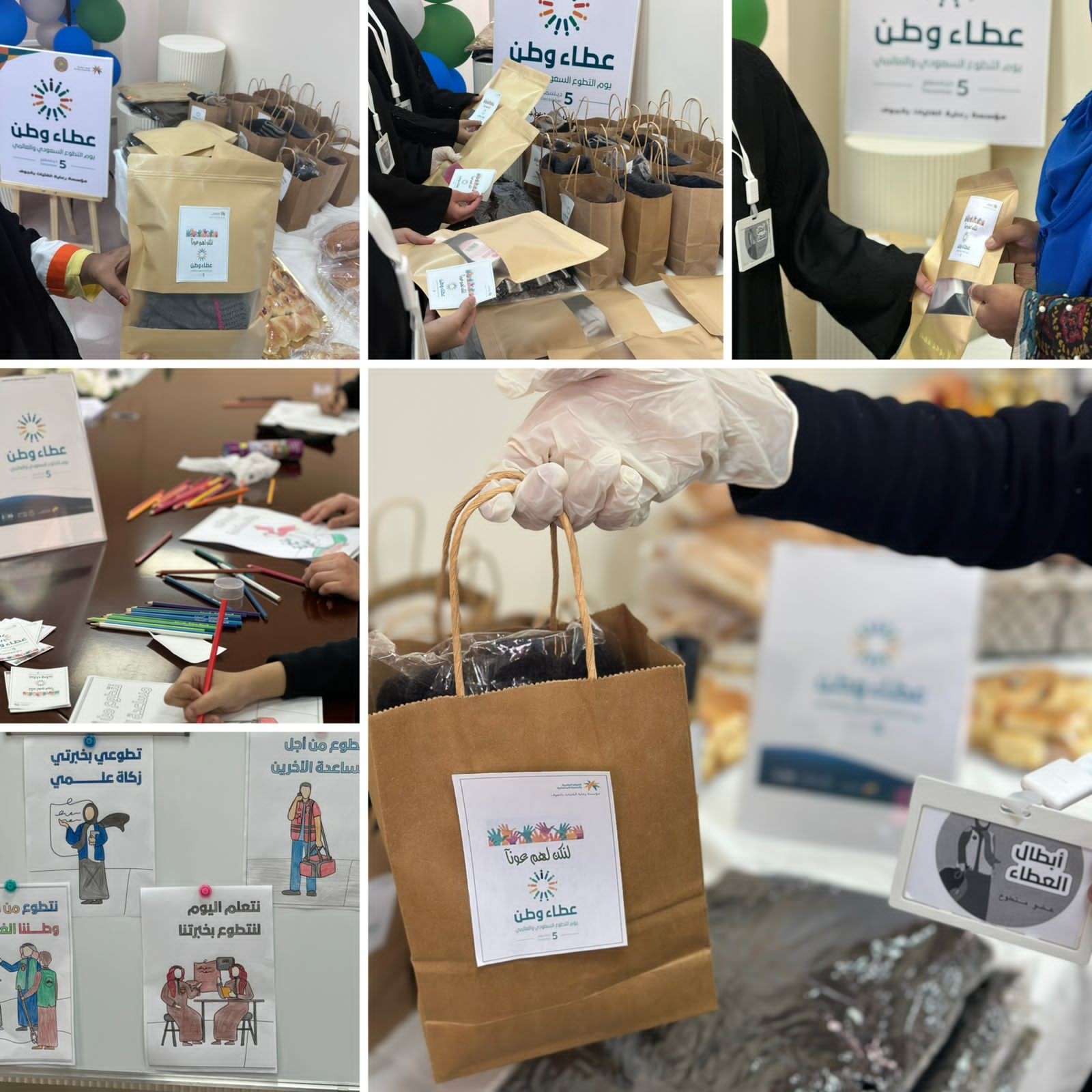 واحتوى البرنامج على تجهيز ركن إفطار ومشروبات ، ركن توزيع قفازات شتوية ، ركن زراعة نباتات، ركن المشاركة بالرسم والتلوين لشعار التطوع وذلك من تنفيذ نزيلات المؤسسة ، وعرض شرح لأهداف وأهمية التطوع للفرد وللمجتمع .