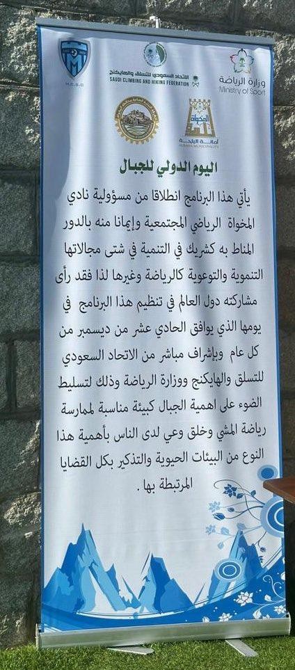 أقام نادي المخواة الرياضي برنامج اليوم الدولي للجبال وذلك بجبل شدا الأسفل بالمحافظة بالشراكة مع وزارة الرياضة والاتحاد السعودي للتسلق والهايكنج وبلدية المحافظة وغرفة المخواة