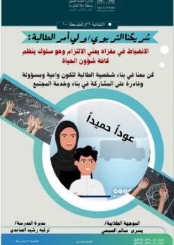 كما استقبلت الابتدائية السادسة والعشرون والمتوسطة العاشرة الطالبات بقيادة مديرة المدرسة تركية الصاعدي بتهيئة الأجواء المناسبة لهن للانتظام بالدراسة خلال الفصل الدراسي الثالث وحث الطالبات على البداية الجادة وقدمت الموجهة الطلابية يسرى الصبحي برنامج عن الانضباط المدرسي وأهميته للطالبات شرحت خلاله قواعد السلوك والمواظبة للطالبات واستقبلت المعلمات الطالبات في حجرات الدراسة بهمة عالية ونشاط في إعطاء الدروس ونشرت العديد من المنشورات عن الفصل الدراسي الثالث وعدم الغياب.