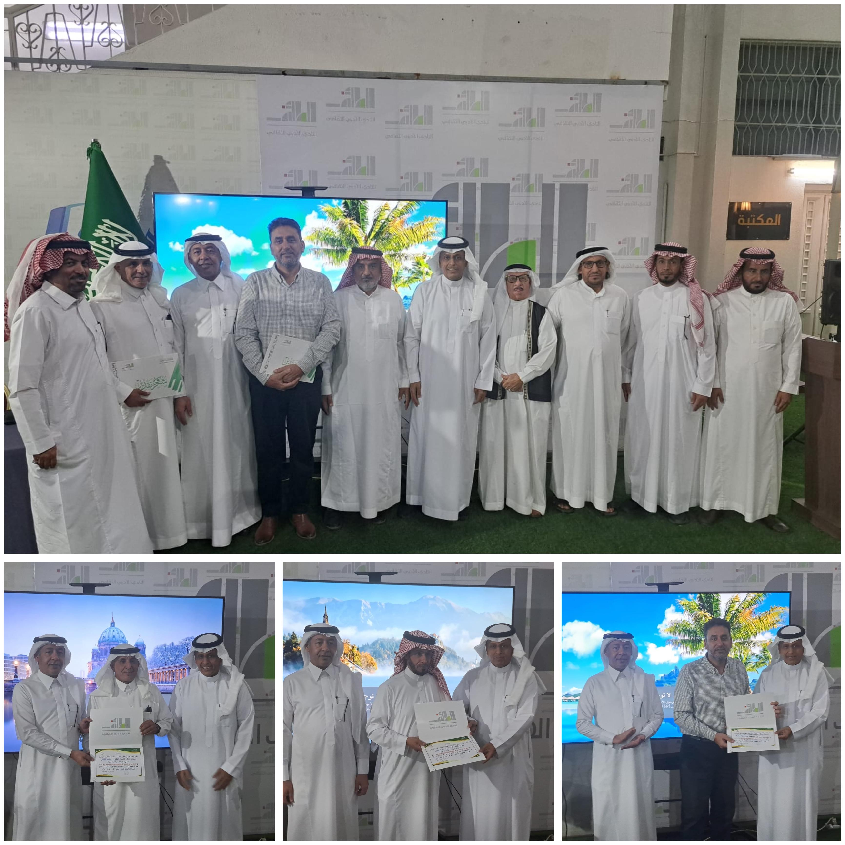 وفي نهاية الأمسية قام رئيس النادي الأدبي الثقافي بالطائف الأستاذ عطا الله الجعيد بعد إلقاء كلمته بمشاركة رئيس جماعة فرقد الإبداعية الدكتور أحمد الهلالي بتكريم الضيوف المشاركين والتقاط صورة تذكارية جماعية مع الضيوف و الحضور .